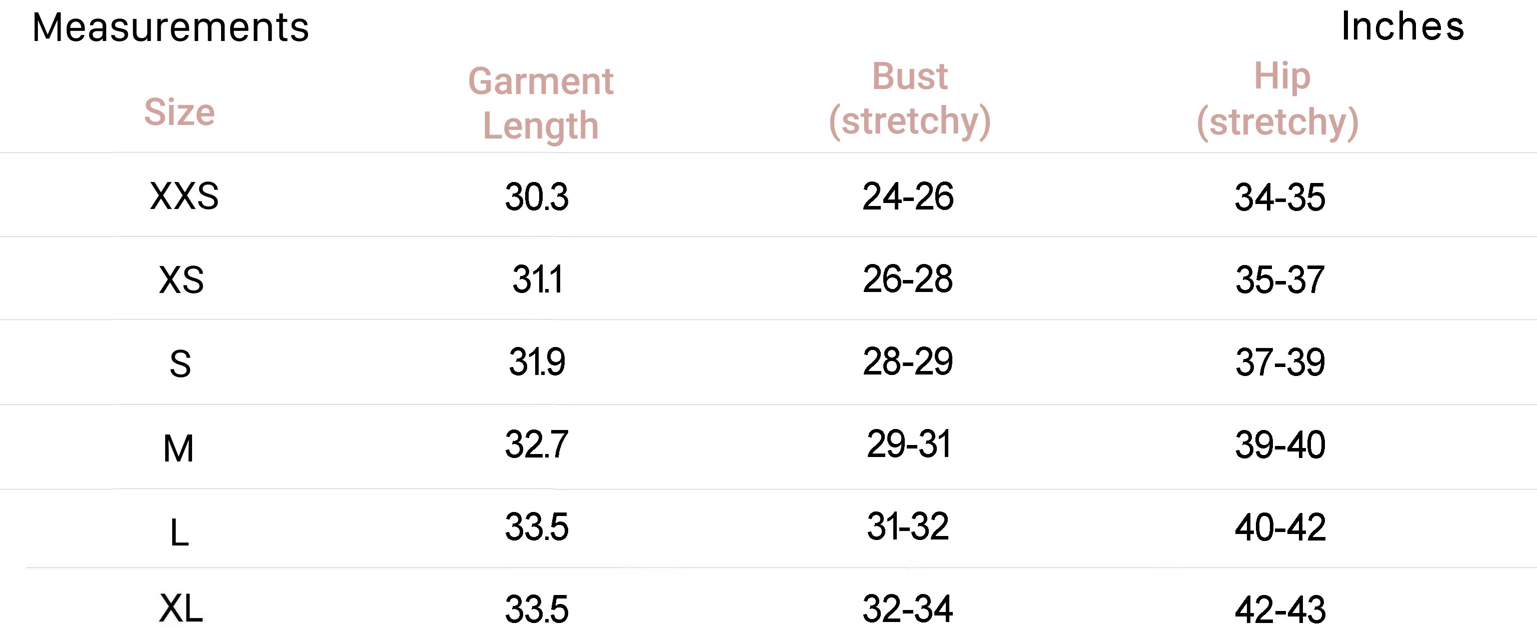 | XXS | 0 | 32 | 4 | 29.5-31 | 22-24 | 32.5-34 |