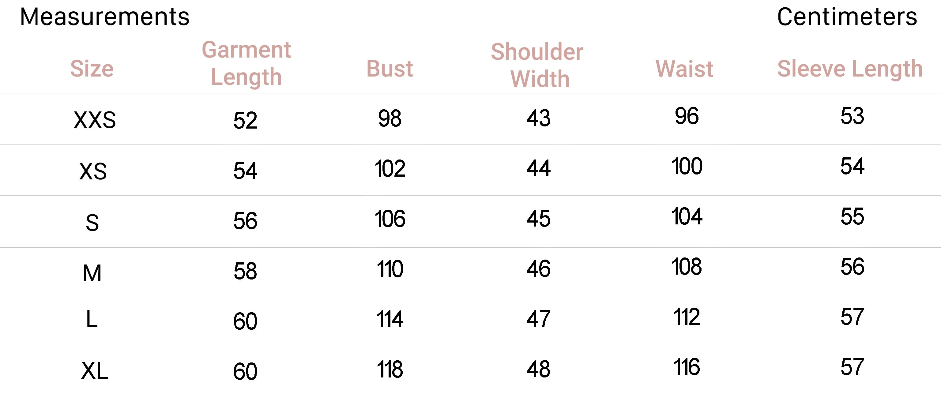 | XXS | 0 | 32 | 4 | 29.5-31 | 22-24 | 32.5-34 |