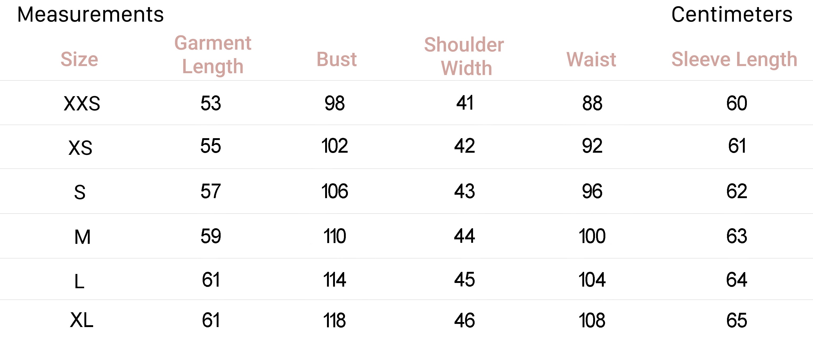 | XXS | 0 | 32 | 4 | 29.5-31 | 22-24 | 32.5-34 |