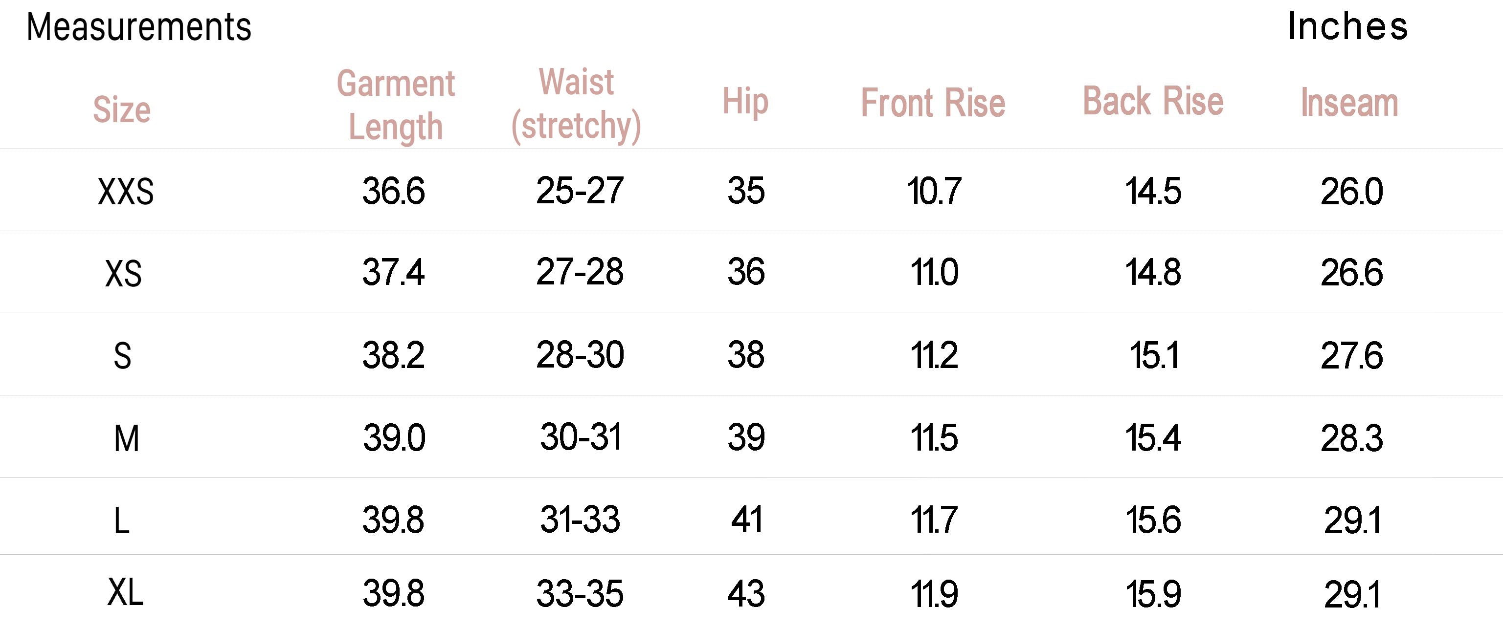 - Size XS Inseam: 26.6", Rise: 11"