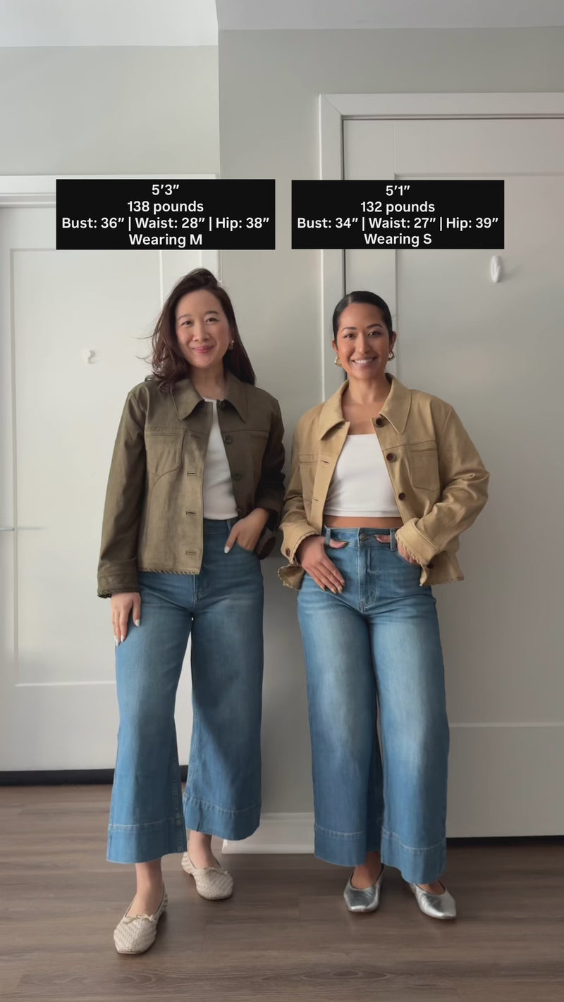 • Med-weight denim with gentle stretch, crisp yet fluid in drape